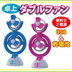 - かわいい小さなダブルファン!AC電源不要!USBと乾電池の2電源対応