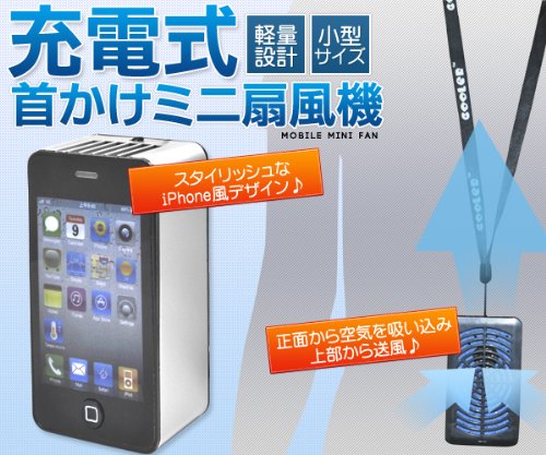 - スタイリッシュなiPhone風デザインの首かけミニ扇風機!熱中症対策、スポーツ観戦や野外ライブ等にオススメです!