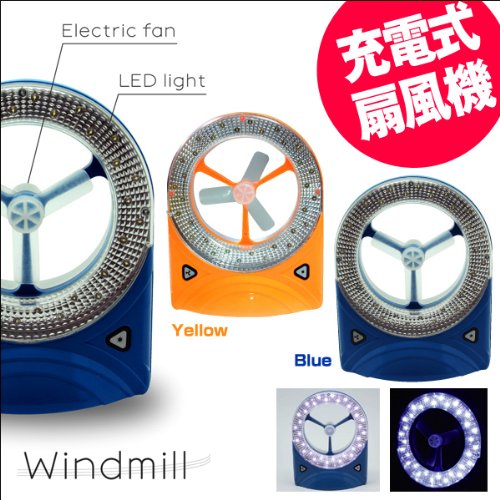 LED照明付 コンパクト充電式扇風機 Windmill 【節電:コードレス:ファン:ライト】 ブルー